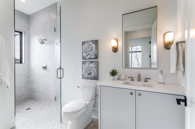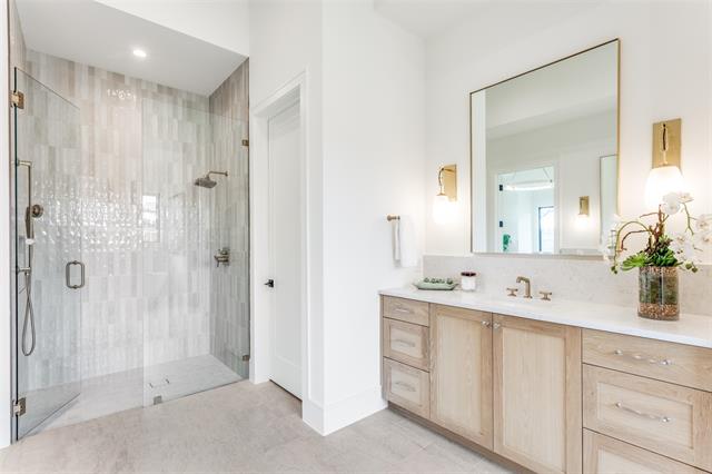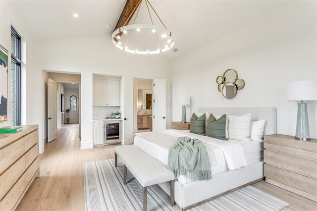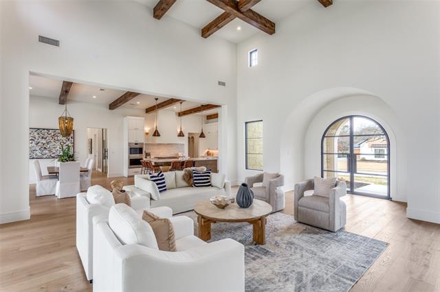 Tucked within the quiet enclave of Samantha Springs Estates, this newly completed custom residence offers privacy and refined design. Set on an elevated, tree-filled acre lot, the home feels both expansive and protected — a peaceful retreat surrounded by mature trees. Inside, natural light defines the experience. Steel and glass doors and windows, wide-plank white oak floors, wood-beamed ceilings, and a soft, organic palette create a home that feels warm, grounded, and elegant. Open floor plan invites connection while still allowing each space to breathe. Gourmet kitchen is designed for both everyday living and entertaining at scale. Wolf and Sub-Zero appliances, a center island, custom cabinetry, quartz countertops, and a handmade Zellige tile backsplash come together in a space that is as beautiful as it is functional. Study offers a quiet place to work or retreat, featuring a beamed ceiling, statement chandelier, and a wall of custom built-ins for storage.Primary suite is a sanctuary with a sitting area and a coffee bar with beverage fridge. Spa-inspired bath features dual vanity areas with custom mirrors and elegant lighting, frameless glass shower wrapped in custom tile, and a freestanding soaking tub. Two expansive walk-in closets with custom built-ins complete the suite. Downstairs, an oversized flex space serves beautifully as a game room or media lounge, highlighted by a custom ceiling with LED lighting. A bar with sink, cabinetry, beverage refrigerator, and a glass-enclosed wine display is ideal for entertaining.Guest suite on the main level accommodates a king-size bed and seating area, with a large walk-in closet and private bath. Upstairs, a spacious game room provides a perfect retreat, accompanied by three additional bedroom suites, each with its own en-suite bath. Oversized covered patio invites year-round enjoyment, complete with a grilling station featuring a Coyote grill and honed black granite countertop.