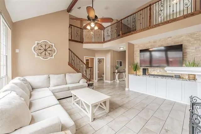Welcome to 275 Meadowside Drive, a gorgeous two-story home in Keller offering exceptional curb appeal and 2,817 square feet of thoughtfully designed living space. This home features an incredible layout with 4 bedrooms and 3.5 baths, including primary suites on both levels. Just off the entry, a versatile flex space connects seamlessly to the formal dining room, creating the perfect setting for entertaining or easily adapting to your lifestyle. The main living areas flow effortlessly, featuring a warm and inviting living room with a fireplace, a beautiful kitchen, and a breakfast nook. A striking staircase serves as a central focal point, visible from multiple rooms and adding an elegant touch throughout the home. The first floor also includes a half bath, a secondary primary suite with its own ensuite bath, and a utility room with direct access to the garage. Upstairs, the expansive primary suite offers a true retreat, complete with a cozy sitting area, two closets, and a spacious ensuite bath. The second level also features a dedicated office, two secondary bedrooms, and a full bath. Step outside to a generously sized backyard with an open patio and a storage shed, ideal for relaxing or entertaining. Additional highlights include fully paid-off solar panels for energy efficiency, no HOA, a prime location near shopping and dining, and zoning to highly sought-after Keller ISD. This home blends comfort and convenience in a prime Keller location. Schedule your showing today!