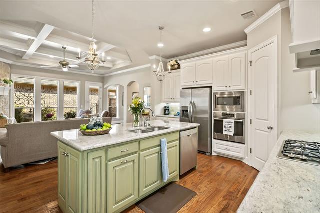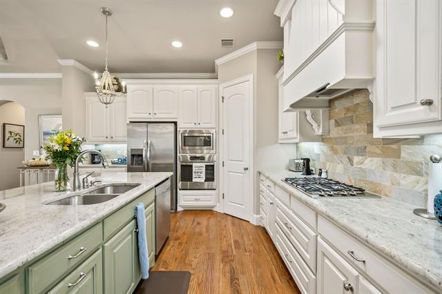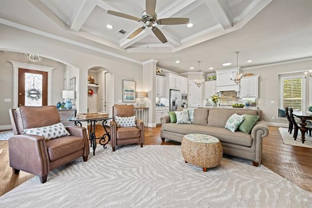 Built-in Features, Built-in Wine Cooler, Cable TV Available, Chandelier, Decorative Lighting, Eat-in Kitchen, Flat Screen Wiring, Granite Counters, High Speed Internet Available, Kitchen Island, Natural Woodwork, Open Floorplan, Pantry, Vaulted Ceiling(s), Wainscoting, Walk- In Closet(s)