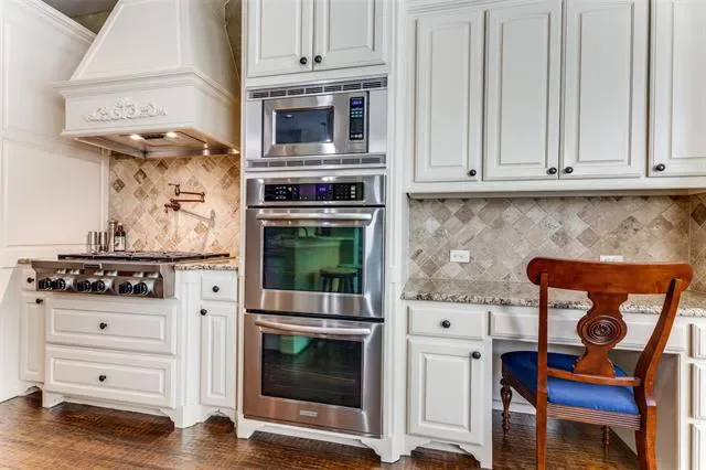 First time offered since built, this custom Newport Custom Homes property sits on an oversized .35-acre lot in the Silverleaf neighborhood in east Keller with a beautiful pool and spa. The brick and stone exterior paired with impressive landscaping creates a strong first impression. Set within an established neighborhood with mature trees and green spaces including a playground. A new Class 4 roof has been recently installed, which can have a positive impact on insurance costs. The floorplan offers open living, dining and kitchen areas while keeping other spaces more private for quieter living. A rare feature, the majority of the living space is on the first floor, including the primary suite, three additional bedrooms, and two offices. Refinished hand-scraped hardwood floors run through the entry, dining, kitchen, breakfast and den. The kitchen features a breakfast bar open to the den and breakfast area, high quality wood cabinetry, granite countertops, stainless appliances including dual ovens, 6-burner gas cooktop, microwave, dishwasher, and a walk-in pantry. Walls of windows in the kitchen, breakfast and den overlook the pool and bring in natural light. The primary suite also overlooks the pool and features an ensuite bath with soaking tub, separate shower, dual vanities, and a walk-in closet. The gameroom and fifth bedroom with full bath are tucked away on the second level, helping reduce noise to the main living areas. Covered front porch and large covered back patio overlook the backyard and pool – with yard space and a hidden storage building. Three-car garage and extra parking pad for oversized vehicles. Efficiency features include Low-E windows, insulation, and radiant barrier. Located near Bear Creek Park and Keller trails, close to SH 1709 with ample shopping and dining, and within Keller ISD. Ideally located just minutes to Southlake and Colleyville. Buyer to verify schools because they may be changing for 2026-2027!