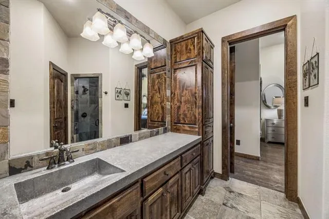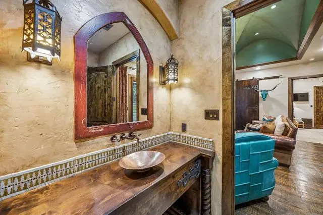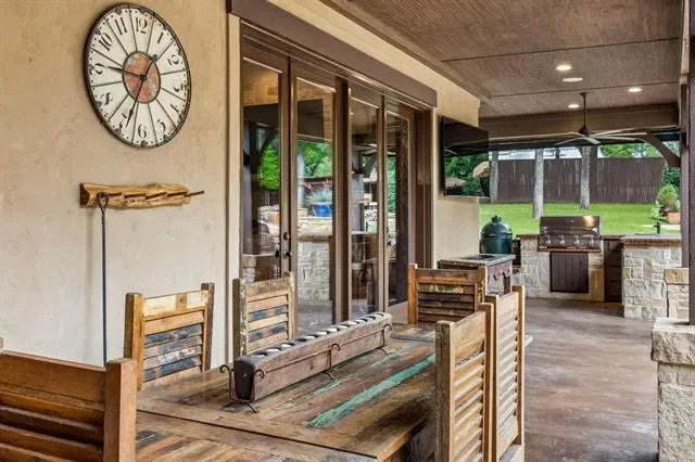 Dreams have an address — and this is it. Nestled within the prestigious Southern Hills of Keller, where nearly an acre of lush, manicured grounds sets the stage, 1216 Pine Hurst Drive welcomes you into a world of effortless luxury and timeless warmth. From the hand-forged wrought iron entry door to the soaring wood beam ceilings, every detail was chosen with intention and every room tells a story of craftsmanship, comfort, and extraordinary living. A private courtyard entry leads into an intentionally designed floor plan that flows beautifully from room to room. The chef''s kitchen is anchored by an oversized island with extended seating, double ovens, a 6-burner gas cooktop, and a built-in refrigerator. Mirroring the kitchen, the grand family room features custom wood beams, a floor-to-ceiling stone fireplace, and multiple French doors opening to the outdoor oasis. Entertain effortlessly with a dedicated wine room, a fully appointed wet bar with ice maker and copper sink, a game room with custom oversized sliding doors, a tiered media room, a guest casita with kitchenette, and two additional bedrooms — one complete with custom built-in bunks and a loft. The primary suite is a true sanctuary — vaulted beam ceilings, a see-through stone fireplace, and a spa bath featuring hammered copper sinks, a copper soaking tub, a sitting area with beverage bar, and a custom walk-in closet with island. Step outside to your private resort: a covered outdoor living area with floor-to-ceiling stone fireplace, an outdoor kitchen with attached grill and Green Egg, a custom paved patio with fire pit, a heated pool and spa, a lit pickleball court, and so much more. Major systems have all been updated — three HVAC units, two tankless water heaters, pool heater, and roof all replaced within the last three years. A Versalift attic lift, floor safe, and hidden safe niche complete this one-of-a-kind offering. Zoned for top-rated Keller ISD. Welcome home.