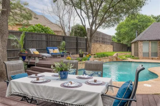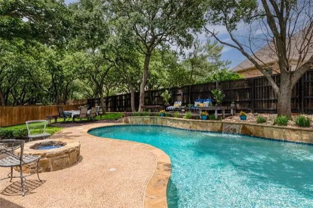 Step outdoors to experience resort-style living at its finest. The expansive patio, sparkling swimming pool, and stylish firepit form the ultimate retreat for relaxation or entertaining beneath the stars. Whether hosting summer gatherings or enjoying a quiet evening, this outdoor space offers a perfect year-round escape.