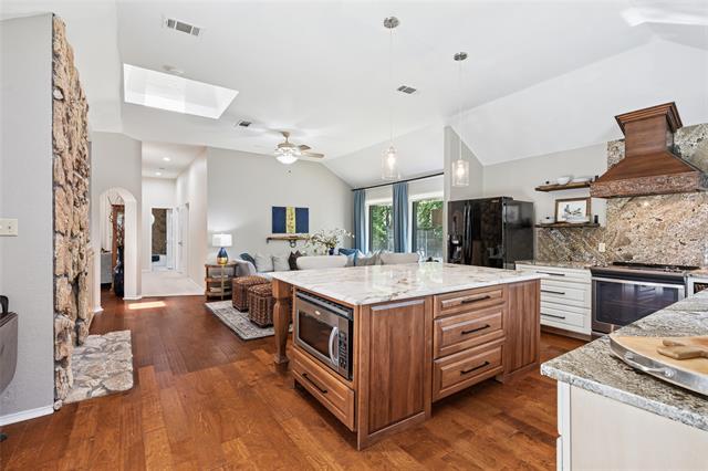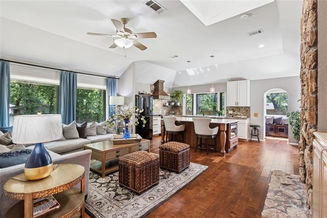 Newer windows (2021) frame views of the expansive, private backyard – large enough for a future pool and ideal for outdoor dining, relaxing, or play year-round. Mature trees surround the property, providing shade, beauty and exceptional privacy across the oversized lot. Two inviting living areas connected by a double-sided fireplace offer versatile spaces suited for both casual gatherings and formal occasions. Located just minutes from Keller Town Center and Southlake Town Square, this home provides convenient access to premier shopping, dining, and Dallas Ft Worth International Airport. Zoned to award winning Keller Independent School District. This one-of-a-kind property combines peaceful neighborhood charm with distinctive designer touches you won’t find anywhere else. Don’t miss the opportunity to make it yours!