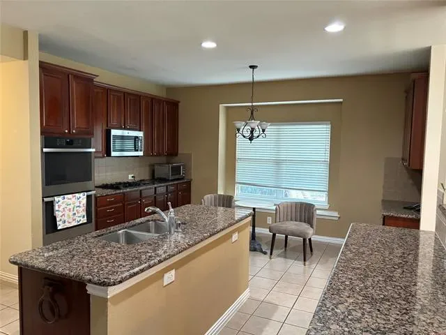 Enjoy this beautiful 5 bedroom home with an inground saltwater gunite pool in a beautiful community. The home backs to a large, beautiful greenbelt area. The interior has a beautiful entry and dual staircase. The large formal living room overlooks the patio and pool. The property has a breakfast bar, large walk-in pantry, granite counter tops, dark wood cabinetry and large, gourmet kitchen area. The large kitchen island also has a sink. Subject has a recently installed garbage disposal and a roof cover that was reportedly replaced in 2023. All information to be verified by the buyer. Rattikin Title, Melody Stovall, Vice President, Branch Manager & Escrow Officer Rattikin Title Company