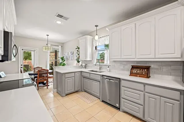 Located on a desirable corner lot in Keller ISD, this 4-bedroom, 3-bath home offers 2,340 sq ft of comfortable living with a layout that fits both everyday life and entertaining.Step inside to soaring ceilings, abundant natural light, and warm wood flooring that creates an inviting first impression. The main living area feels open yet cozy, centered around a fireplace and flowing seamlessly into the dining and kitchen spaces.The flexible floor plan includes multiple living areas, giving you options for a home office, game room, or second lounge. Spacious bedrooms provide comfort for everyone, while the primary suite offers a private retreat with plenty of room to unwind.Out back, enjoy a peaceful setting with a deck that is perfect for relaxing or hosting friends. The corner lot adds extra space, privacy, and curb appeal. Zoned to highly sought-after Keller High School and conveniently located near shopping, dining, and major roads, this home checks all the boxes. Enjoy access to Keller’s top amenities, including the Keller Pointe Natatorium, nearby parks, walking trails, and a dog park and the weekend farmers market giving you a true lifestyle experience right outside your door.