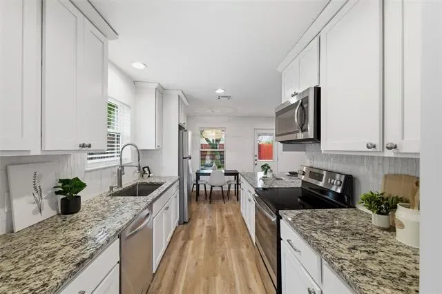 MULTIPLE OFFERS RECEIVED. Highest & Best Offer due by 12:00 Noon on Monday, April 27. You’ll love coming hoe to this beautifully updated single story Ranch-style hoe in the heard of Keller! All new Luxury vinyl plank flooring in the main living areas and new carpet in the bedrooms. Fully remodeled galley kitchen with white cabinets, granite counters and stainless steel appliances including refrigerator. Fully remodeled bathrooms featuring designer tile, seamless glass shower enclosures, modern mirrors, hardware and lighting fixtures. Newer AC and Roof. Enjoy entertaining family and friends in the huge gassy backyard with multiple stone and concrete patios complete with outdoor patio furniture. Conveniently located just a short distance to downtown Keller and the highly acclaimed Keller High School, Keller Middle, Bear Creek Intermediate and Keller-Harvel Elementary Schools.