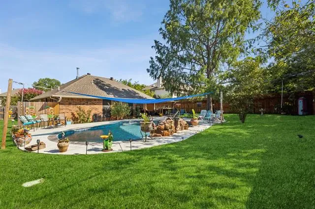Step inside to find a warm and inviting layout featuring a spacious living area that flows seamlessly into the dining space and kitchen — perfect for everyday living and hosting family and friends. The primary suite offers a private bath and relaxing retreat, while two additional bedrooms provide flexibility for guests, a home office, or growing needs. But the real showstopper is the backyard. Enjoy Texas summers in your private pool, then gather under the covered outdoor entertaining space featuring a built-in grill — ideal for game days, summer cookouts, and evening gatherings under the stars. The oversized yard offers plenty of room for pets, play, and relaxation. With an attached two-car garage, mature landscaping, and a location convenient to schools, parks, and major highways, this home blends comfort, convenience, and lifestyle. If you’ve been looking for a home that truly brings the entertaining outdoors — this is it!
