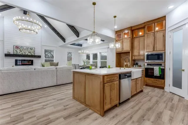 Built-in Features, Cathedral Ceiling(s), Chandelier, Decorative Lighting, Double Vanity, Eat-in Kitchen, High Speed Internet Available, Kitchen Island, Natural Woodwork, Open Floorplan, Pantry, Vaulted Ceiling(s), Walk- In Closet(s)