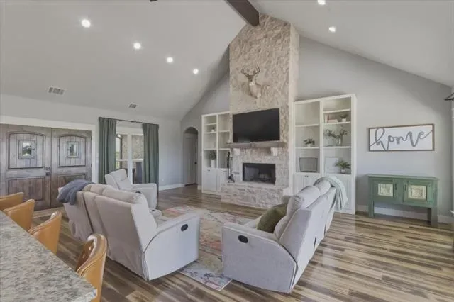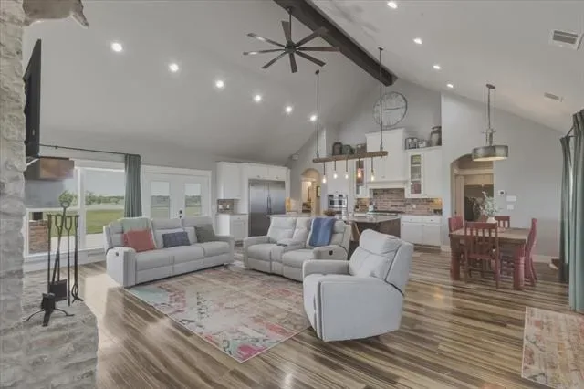 Custom built and thoughtfully laid out 11.8-acre ag-exempt farm and ranch property in Millsap with custom home, quality finish-out, and versatile improvements. Home features a spacious upstairs game room and a convenient half bath with exterior access to the back patio, ideal for future pool entry or easy clean-up from outdoor activities. Property includes 2 barns: the first offers apartment living quarters, overhang parking, and 3 stalls; the second is currently used as a show sheep barn but offers flexible multi-use space. Cross-fenced acreage with a long, attractive driveway off a quiet shared private road. Located among quality ranchettes and horse properties, just minutes from I-20, a short drive to Weatherford, and within an hour of DFW Airport. Enjoy country living with excellent accessibility and the benefit of lower taxes through ag exemption.