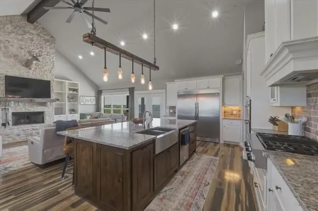 Cathedral Ceiling(s), Granite Counters, Kitchen Island, Open Floorplan, Walk- In Closet(s)