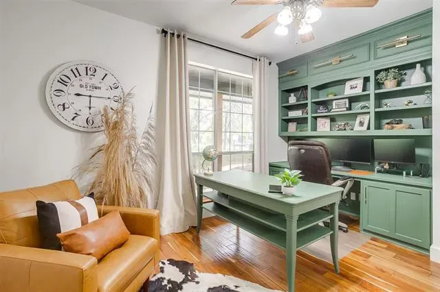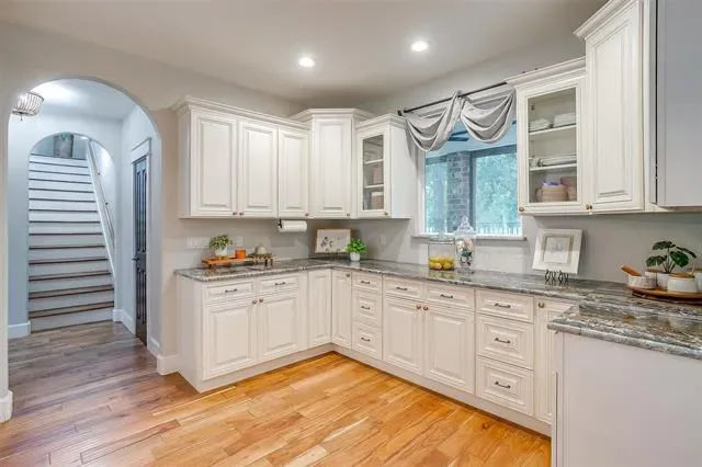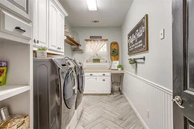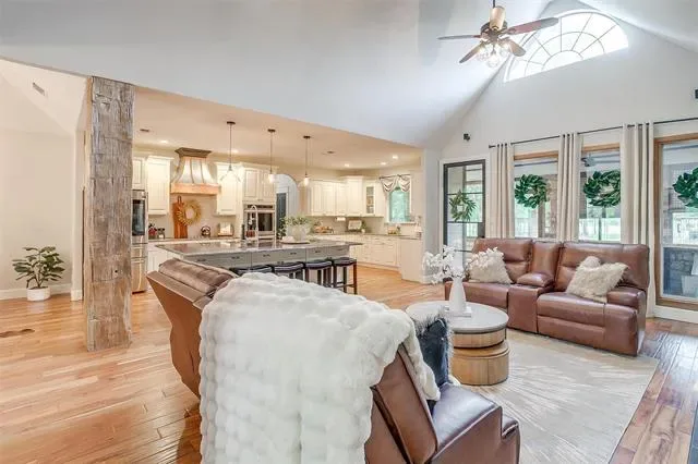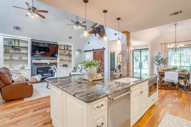 A rare horse property offering 10 gorgeous acres with exquisite home in Millsap. As soon as you drive through the gate, you immediately feel the peace and serenity of country living. Walk through the front door, the opulence of this home is evident. Thoughtfully updated throughout creating an open floor plan featuring and expansive kitchen with custom cabinets and a 6X9 massive island with remarkable granite countertops and in counter built in microwave. The living room has vaulted ceilings, wall of windows, built in bookshelves and a fireplace! Large primary suite with luxurious spa en-suite featuring wet room with dual shower heads and a soaking tub. Hand scraped acacia wood floors and tile throughout, carpet in bedrooms. Impeccable attention to every detail. Enjoy the incredible sunset views while lounging by the pool or enjoying the 18X24 outdoor pavilion that overlook the country pastures and trees. 40X40 shop with 110 and 220 electric, 4 stall barn master barn with tack room, round pen, lean too, 30- and 50-amp RV hook-ups and so much more!