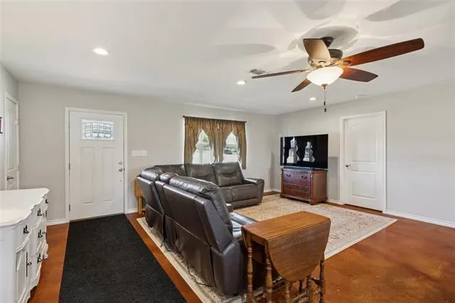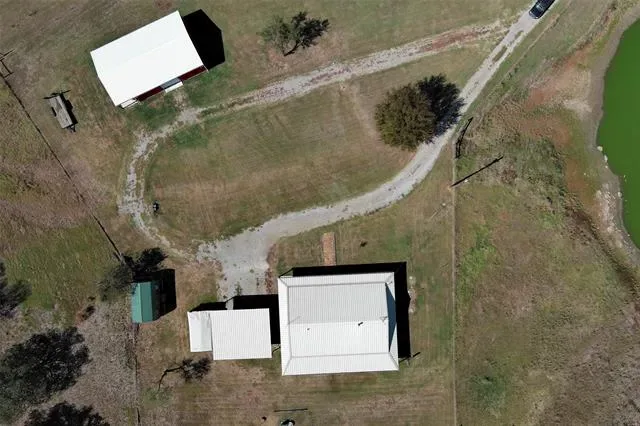 This beautifully maintained 3-bedroom, 2-bath barndominium offers peaceful country living with modern Texas charm. Situated on 1.637 acres, the home features approximately 1,800 square feet of open-concept living space with stained concrete floors, a cozy wood-burning stove, and abundant natural light. Built in 2017, the home includes a remodeled kitchen that serves as the centerpiece, showcasing granite countertops, a large island with bar seating, stainless-steel appliances, and generous cabinet storage. The primary suite provides a relaxing retreat with a dual-sink vanity, walk-in shower accented with subway tile, and a freestanding soaking tub. Enjoy quiet mornings or Texas sunsets from the covered wrap-around porch overlooking the spacious yard. The property includes a 30×40 workshop with electricity and a 10-foot overhang providing additional covered space for equipment or projects, a 12×20 outbuilding with power, ideal for hobbies or a home office, and a 25×30 covered carport for year-round vehicle protection. A circular driveway offers ample parking, while the metal roof and energy-efficient design add lasting value. Located just minutes from Weatherford and Mineral Wells and about 45 minutes from Fort Worth, this property perfectly blends rural serenity with modern comfort.