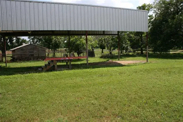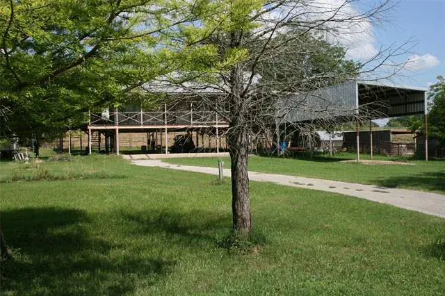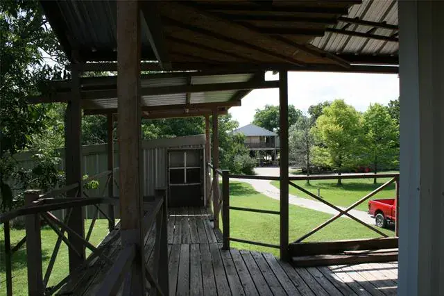 This property is across the road form the Brazos River. It is built approximately 10 feet above the property, so it will be safe during any flooding from the Brazos River. You are able to use the space bellow the house for a nice parking area for six vehicles easy. There is also a covered parking area for an RV. You will enjoy the covered porch that goes all the way around the whole house. There is a wind generator, and water recovery form the metal roof. You will like the wood floors in the living and dinning area. The two bedrooms also have a private bath. The house is insulated well, so the window air condition units keep the house as cool as you would like. There is also plenty of storage room in the attic. The large storage building is also a big plus for many items.