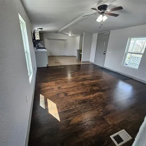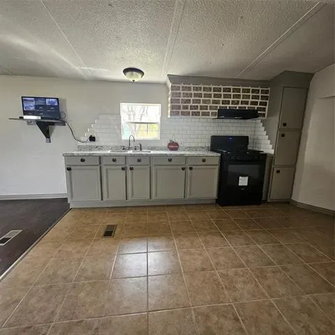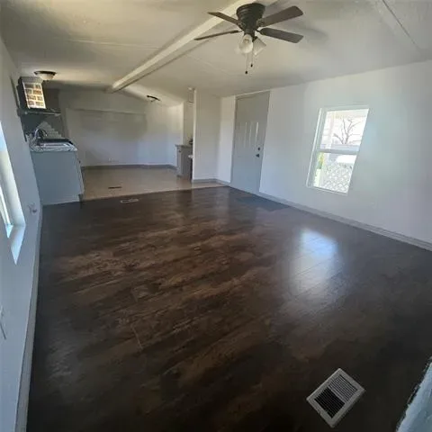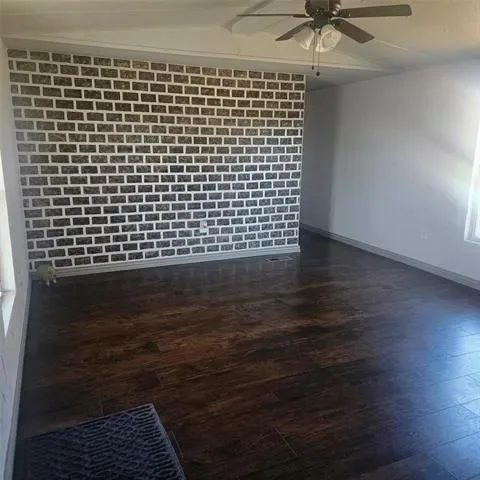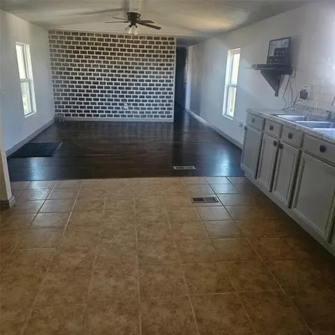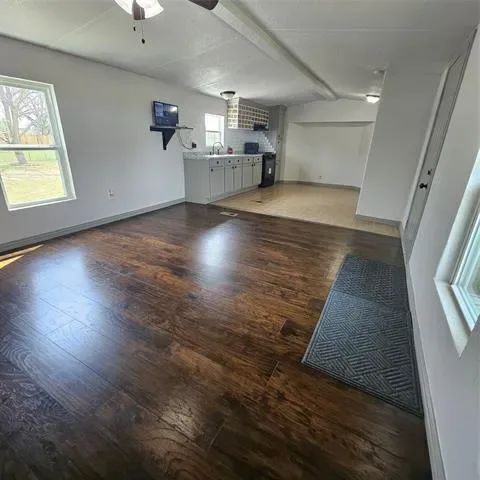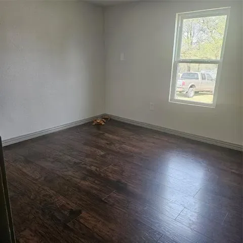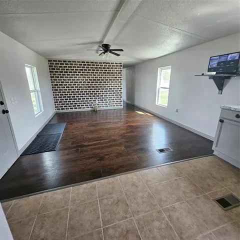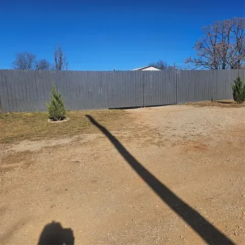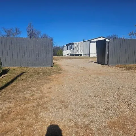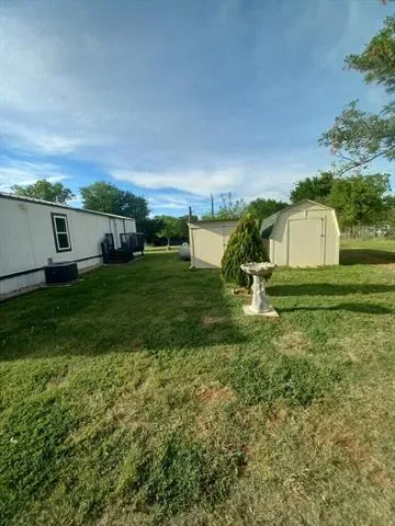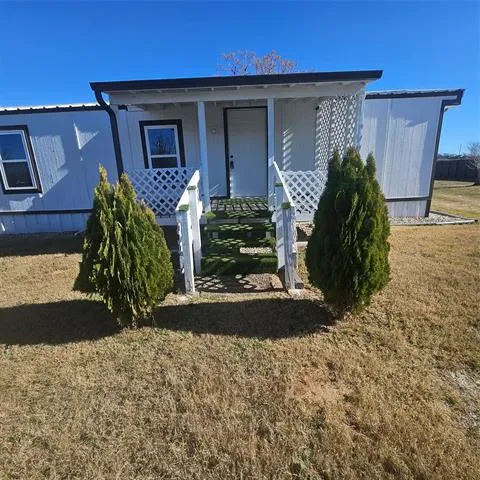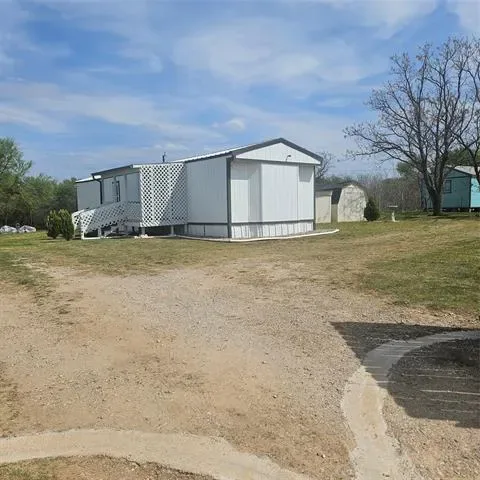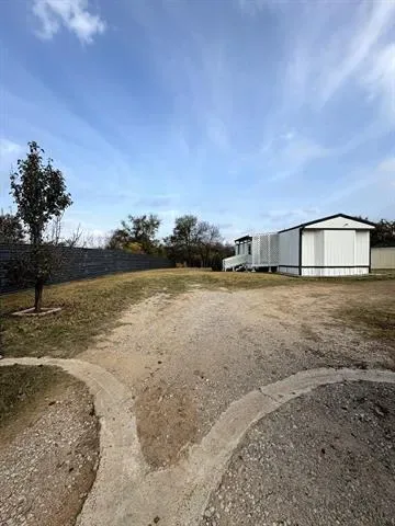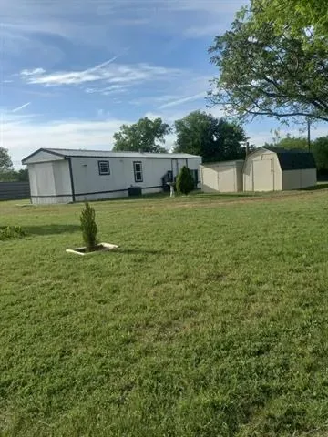 Impressive two bedroom one bath home with large living area open to eat in kitchen with gas range on just over 1 fenced acre that has a seasonal creek at rear of property. Full washer and dryer hook ups are located in hallway right between the two bedrooms .One thing unique about property are the small boxed in trees inside fence and just outside of fence lines that have a timed sprinkler system to each boxed in tree. There are two storage buildings, one with electricity that would make a small shop for dad and his tools. It’s unrestricted and minutes to major highways to the bigger cities of Mineral Wells and Weatherford and that means shopping too.
