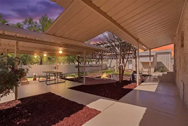 Covered Patio/Porch, Fire Pit, Lighting, Storage
