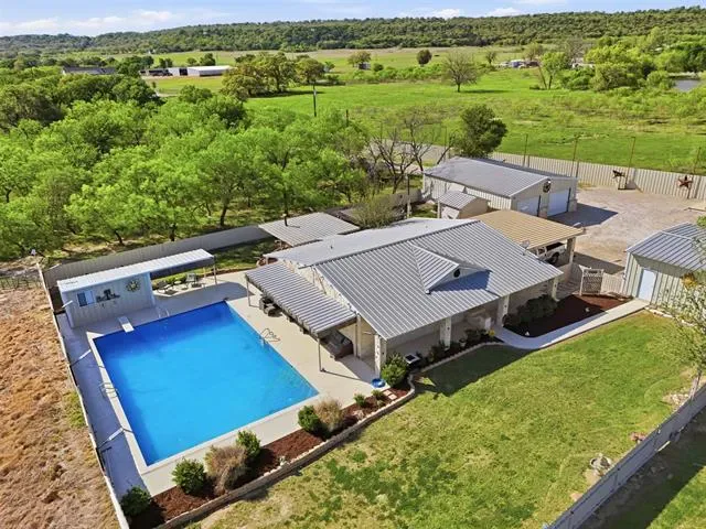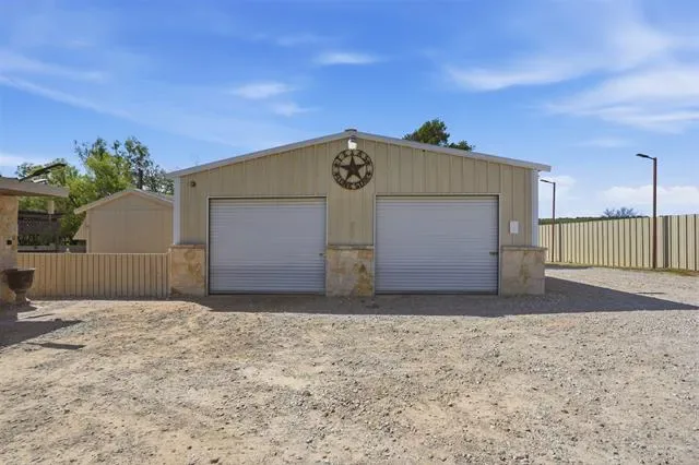 8 Acres • Ag Exemption • 8,000 Square Foot Warehouse. Exceptional multi-purpose property that combines residential luxury with extensive agricultural and business facilities. This unique property features an 8,000+ square foot, fully encapsulated warehouse equipped with heating and HVAC, multiple roll-up doors for large vehicles, three restrooms, and dedicated office space. The grounds are reinforced with 4 inch thick caliche rock from fence to fence and include LED lighting for easy nighttime navigation. The entire acreage is perimeter-fenced and cross-fenced for livestock. It features natural grasses, a water tank, and multiple water sources throughout the property. A private well serves as the primary water source, eliminating monthly water bills. The Austin stone residence offers a metal roof and a private, gated entrance for complete privacy. The outdoor living area includes a swimming pool, cabana, and multiple patios designed for entertaining. Additional structures include a 1,200 square foot shop with a 3-ton HVAC unit and a second shop suitable for a variety of uses. With ample space to build an additional residence, this property is also ideal for multi-generational living. This property has been meticulously maintained and truly must be seen to appreciate the endless possibilities it offers. • Video available upon reques •