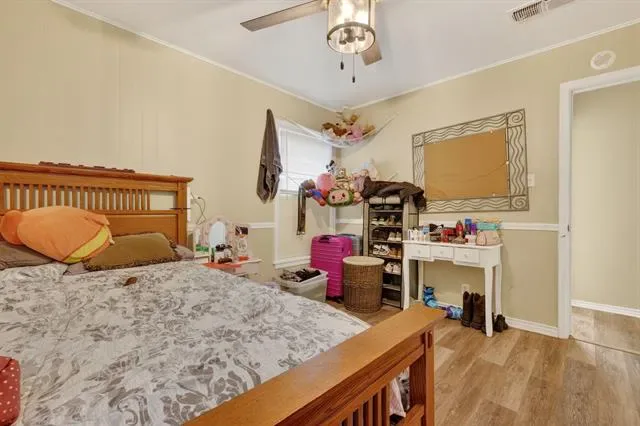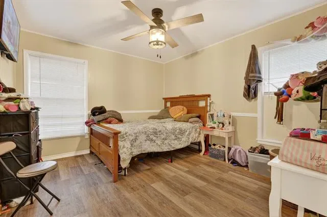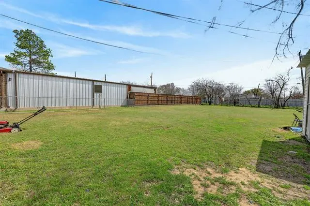 The large backyard provides plenty of room for pets, play, gardening, or simply enjoying a quiet Texas evening outdoors.