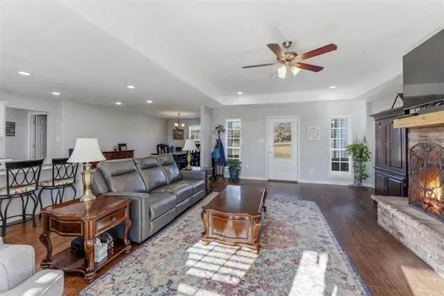 Modern farmhouse living on 5 AG EXEMPT acres offering the peace and privacy of true country living. This immaculate, open-concept home is thoughtfully designed for both comfort and function. The kitchen is a standout feature with a 5-burner gas cooktop, double ovens, and an oversized walk-in pantry—ideal for everyday living and entertaining. The spacious living area features a wood-burning fireplace with gas starter and large windows that capture wide-open country views. All doorways are 36” wide, providing accessibility throughout the home. Outside, the property offers a well-rounded country lifestyle with a functional shop, chicken coop, and established garden area. Whether you’re looking for space to enjoy hobbies, relax, or simply take in the peaceful setting, this property is ready to go.