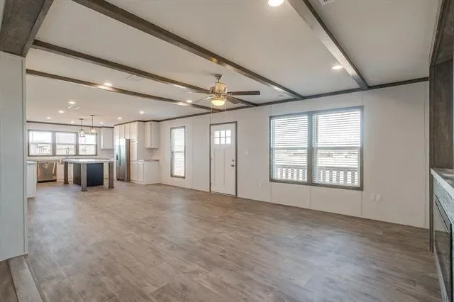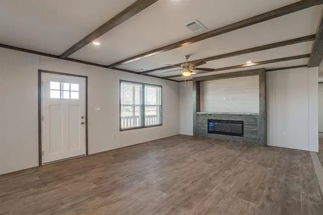 Inside, an inviting open-concept floor plan creates the ideal space for everyday living and entertaining. The heart of the home is the spacious kitchen, featuring a large center island perfect for gatherings. The living room is anchored by a rustic-yet-refined entertainment center and a cozy electric fireplace wrapped in barnwood accents, adding warmth, charm, and character.
