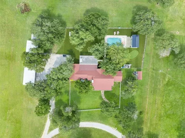 Inside, the home features a spacious living room with a wood-burning fireplace and hardwood floors throughout most of the home. A versatile craft room with its own exterior entrance provides the perfect space for a home office, studio, or hobby room. All three bedrooms are generously sized, offering comfortable living throughout. A bright sunroom overlooks the oversized back porch and pergola, complete with a second wood-burning fireplace, creating an inviting space for relaxing or entertaining year-round. The outdoor amenities make this property truly special. Enjoy a modern in-ground pool and architecturally matching cabana, surrounded by artificial turf across the expansive backyard, which also features a four-hole putting green. The property includes Bluetooth-compatible ceiling speakers throughout the home and on the patio, making indoor and outdoor entertaining seamless. Additional features include covered carport parking for up to five vehicles, a shop with electricity, and a miniature horse barn with back pasture, ideal for show animals or equestrian use. The grounds are fully irrigated and beautifully lit, with exterior lighting on the home and in the surrounding trees. Combining country charm, modern amenities, and exceptional outdoor living, this unique property offers space, privacy, and endless possibilities.