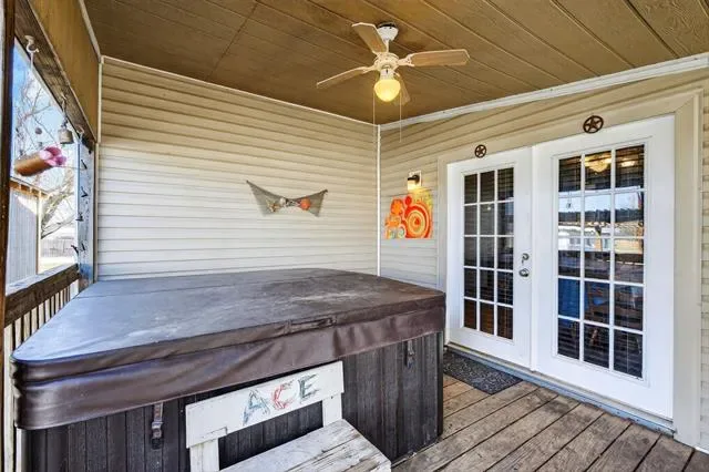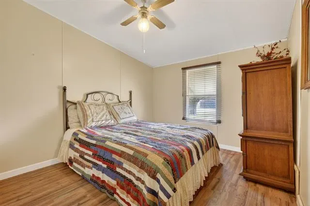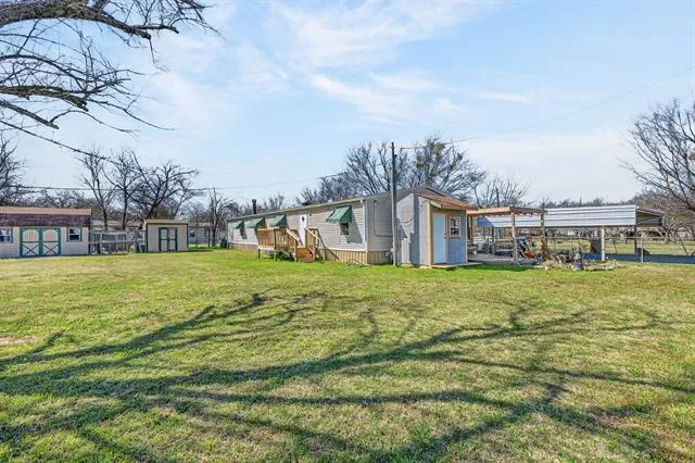 Well-maintained double-wide manufactured home on nearly half an acre! This spacious 1,876-square-foot home offers 3 bedrooms and 2 bathrooms, with numerous updates including a new roof, a new heating system, flooring, carpet, fresh paint, and a recently remodeled primary bathroom featuring a garden tub and separate walk-in shower. The primary bedroom includes an adjoining office space that could easily be converted into a fourth bedroom. A large den offers a cozy wood-burning fireplace, while the spacious kitchen features an island, pantry, breakfast bar, and dedicated dining area. Outdoor amenities abound, including a workshop with electricity, an additional storage building with electricity, an underground concrete storm cellar, an RV pad, and even a chicken coop! RV pad includes both 50 and 30 AMP hookups, and two 110 outlets. There is a second sewer line installed on the East lot, which could serve an additional manufactured home. Start your mornings with coffee on the arbor-covered wood deck or unwind in the hot tub from the covered porch. Schedule your showing today before this one gets snatched up!