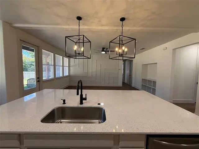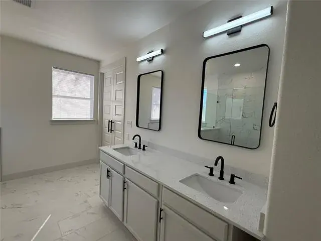 This Stunning New Custom-built home features 4 bedrooms and 3.5 baths, highlighted by decorative lighting, warm colors, and an inviting open floorplan. Breakfast Bar, Walk in Pantry, Electric Drop in Range and Quartz Countertops. Thoughtful design elements include accented walls, a separate utility room, formal dining, and a cozy breakfast area. The home offers two master suites, with the main level showcasing impressive 10-foot ceilings. Situated on a desirable corner lot, the exterior is crafted with custom brick and showcases a unique, handcrafted Texas-outline artwork. Additional upgrades include a full sprinkler system and a double-car garage finished with professional epoxy flooring. Fenced. More Photos Coming Soon.