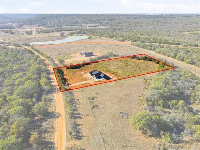 5 Acres with Move In Ready Single Story New Construction Home. Picturesque Country living with a 180 degree view of the Ridgeline making the perfect backdrop. Located within Santo ISD, 7 min drive to I20 and only 30 minutes from Weatherford. Up Coming New Community Remington Ranch with Restrictions but NO POA Community Allows horses. Intentional Floor plan with a flex space to be utilized as a bedroom or office. Perfect blend of open concept with traditional elements custom Cabinetry work. Split bedroom layout where the Master Bath accommodates His and Her Vanities Large Tiled Shower and separate soaking tub WIC. Secondary Hall Bath is oversized with built in storage and 2 sinks perfect for a busy household. Front and back windows line the common area Living and Dining letting the natural light fill the space. Beautifully construction WB Fireplace with stone reaches the peak of the vaulted cathedral living room with Stained cedar beam that elevates the room. Oversized laundry mudroom and Attached Carport. Storage and Walk In closets throughout. Gem of a property. Builder Warranties provided along with a simple landscape package and starter sod,grass package.