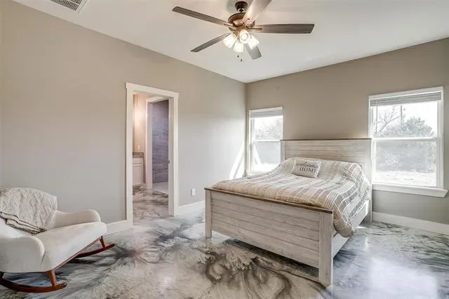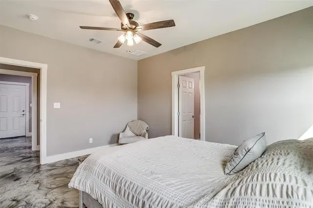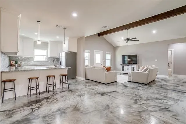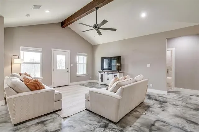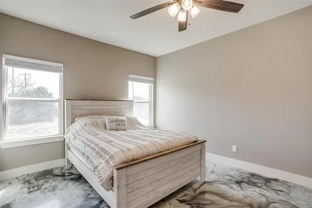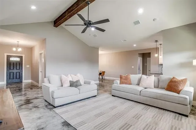 Escape to the tranquility of country living with this stunning ranch-style home, built in 2023, and nestled on just over 3 acres of land ready for your imagination. Featuring 3 spacious bedrooms, 2 well-appointed bathrooms, and a versatile office or bonus room, this home offers the perfect balance of comfort and functionality. The primary bath features double shower heads, double vanities and a extra large walk in closet you will love! The open floor plan creates a welcoming atmosphere, ideal for both everyday living and entertaining. Custom epoxy-coated concrete flooring adds a touch of modern style and durability, while the vaulted ceiling in the living room creates an airy, expansive feel. Ceiling fans throughout the home enhance the cool, breezy environment, ensuring comfort in every room. This home also boasts a large utility room, perfect for laundry and extra storage, as well as a walk-in pantry that offers ample space for your kitchen essentials and more. Step outside to enjoy the serene beauty of over 3 acres of country space, perfect for gardening, outdoor activities, or simply enjoying the peaceful surroundings. Whether you’re looking for a peaceful retreat or a spacious home for your family to grow, this charming country property is ready to welcome you. Close enough to town for the essentials but private enough to get away from it all.
