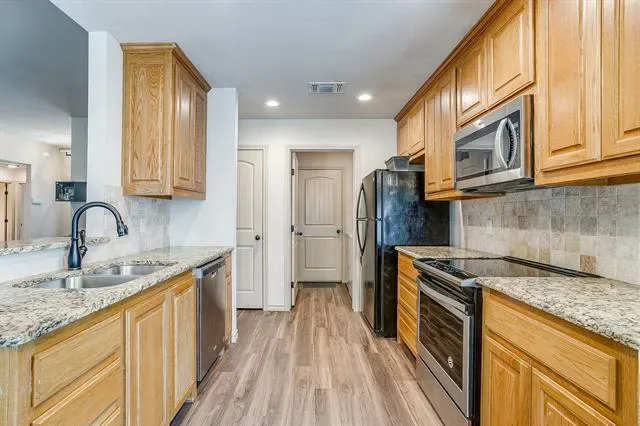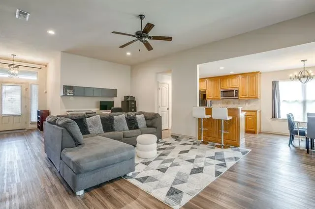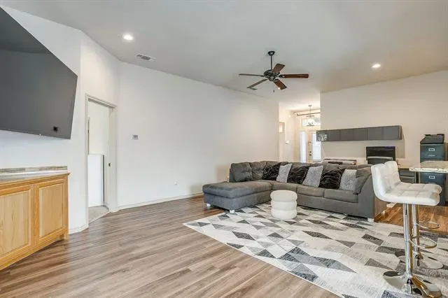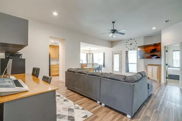 Its open concept living with tall ceilings, dining and kitchen area is perfect for relaxing or entertaining! Split bedroom arrangements make for large bedrooms and tons of closet space. Eat in kitchen with stainless steel appliances, granite counter tops, recessed lighting, double sink, pantry and stone backsplash. Separate dining area off the kitchen. Large open living space with tall ceilings and ceiling fan. Separate utility room located off the kitchen with built in cabinets, electric washer hooks up & additional storage. Large master bedroom with tall ceilings. Opening up to your private ensuite with tile flooring, double sinks, walk in closet, separate garden tub and tiled shower. Privacy fenced backyard has an inviting covered back patio with recessed lighting. Floored attic space for additional storage. This affordable property is minutes from downtown Mineral Wells, shopping, restaurants and schools. See floorplan and Matterport tour.