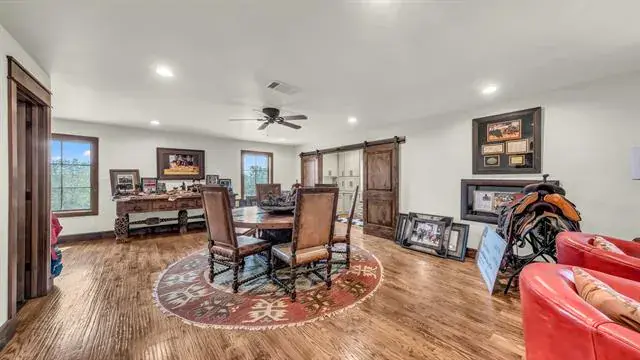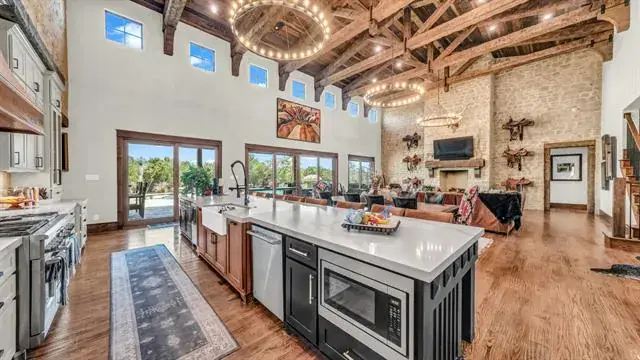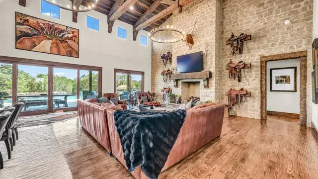 Nestled in the rolling hills of Mineral Wells, this remarkable 69± acre estate combines refined luxury with the serenity of wide-open Texas ranch land. At its center stands a custom 6,114± square-foot residence, thoughtfully designed with five bedrooms, five full bathrooms, and two half-baths. Every detail has been carefully curated, blending rustic elegance with modern convenience. Inside, you’ll find expansive living spaces anchored by a dramatic rock fireplace and soaring wood-beamed ceilings. The chef’s kitchen is a true showpiece, featuring premium appliances, dual dishwashers, a spacious pantry, and a functional layout designed for both entertaining and everyday living. You''ll love the butler''s pantry that provides additional storage. A wall of windows brings the outdoors in, connecting seamlessly to the back patio and sparkling pool, where sweeping views of the surrounding countryside set the stage for unforgettable gatherings. The master suite is a private retreat, complete with its own stone fireplace, spa-inspired bathroom, and an oversized closet with custom finishes. Additional bedrooms are equally well-appointed, offering comfort and privacy for family and guests alike. Beyond the home, the ranch is built for both leisure and function. Rolling pastures, mature trees, and ample space provide endless opportunities for recreation, livestock, or hay production. There is a seasonal creek that run through the property. The property also features a 125'' x 250'' covered arena-perfect for any discipline, an 18-stall horse barn, and a Priefert walker, making it ideally suited for any equine needs. This estate offers a rare combination of luxury, seclusion, and versatility—just minutes from Mineral Wells and within easy reach of the DFW Metroplex. This house is a rare find! It was recently featured in the Cowgirl Magazine!