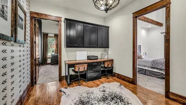 Built-in Features, Built-in Wine Cooler, Cathedral Ceiling(s), Chandelier, Decorative Lighting, Double Vanity, Dry Bar, Eat-in Kitchen, Granite Counters, High Speed Internet Available, Kitchen Island, Loft, Natural Woodwork, Open Floorplan, Pantry, Vaulted Ceiling(s), Walk- In Closet(s), Wet Bar
