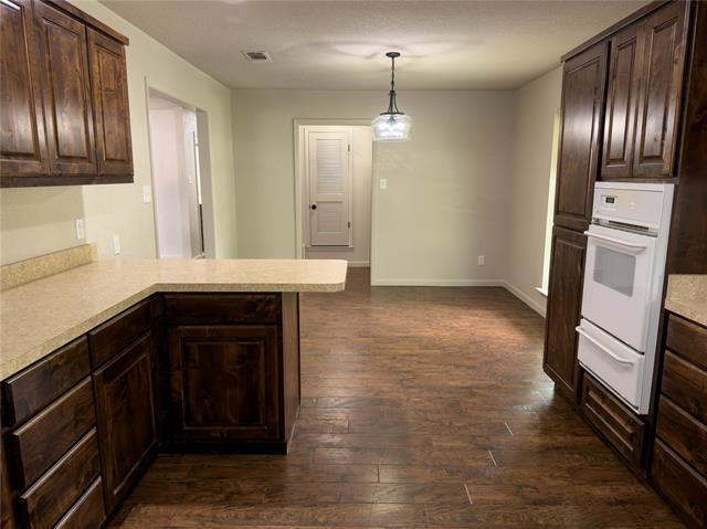 Step inside this charming 3-bedroom, 2-bath brick home nestled on more than one-third of an acre in the highly desirable Mineral Wells neighborhood of Western Hills. Built in 1969, this well-maintained property blends timeless design with thoughtful updates that make everyday living easy and enjoyable. The spacious, open living and dining area is perfect for gathering with family or entertaining guests, while the separate eat-in kitchen offers a cozy breakfast bar and plenty of space for casual meals. The second living area includes a cedar closet—ideal for seasonal storage or cherished keepsakes. A handy laundry room features a storage nook with built-in shelving and even a built-in ironing board to keep things organized. Down the main hallway, you’ll find a convenient storage closet and an extra-large linen closet, offering even more room to stay neat and tidy. The kitchen and primary bathroom are designed with handicap accessibility in mind, and the main bath includes a luxurious walk-in tub with spa-style water jets and soothing lighting. Additional upgrades include tilt-in replacement windows with custom window coverings, a full sprinkler system, and a the roof was replaced in 2025. Outdoor spaces shine with a covered L-shaped patio—perfect for relaxing or entertaining—plus a 2-car garage, 2-car carport, RV-covered parking, and a separate storage building. Located just 5 minutes from downtown Mineral Wells and 2 minutes from Palo Pinto General Hospital, this home combines small-town comfort with modern convenience. Move right in and enjoy a property that truly offers it all.