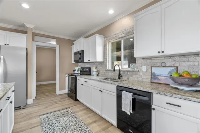 The spacious primary suite offers a relaxing retreat with a large bedroom and a garden tub designed for unwinding after a long day. Out back, a huge covered patio creates the perfect spot for entertaining, relaxing, or simply enjoying the privacy provided by mature perimeter trees.