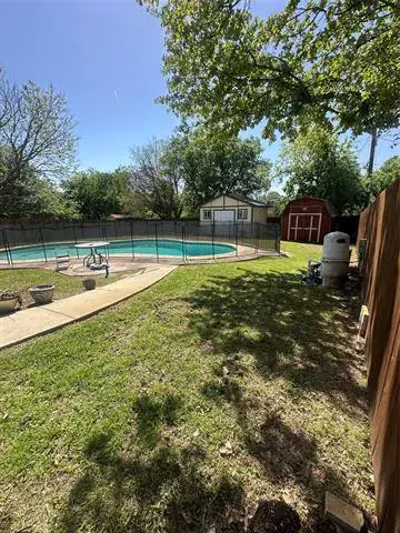 3 bedroom home with 3 full bathrooms and pool! Additional bedroom and full bath added on in the back of the home with side entrance is perfect for mother in law or elderly parent or teen. 2 updated bathrooms, updated kitchen with granite. This home is well maintained and cared for. Located in the heart of DFW in a heavily treed neighborhood with no HOA. The backyard has new stained wood fence and a fence around the pool. The storage shed is perfect for pool supplies, floats and lawn equipment. This home has lots of parking space, including RV or boat on the side of the house behind the side gate. The property is now out of probate and can close any time.