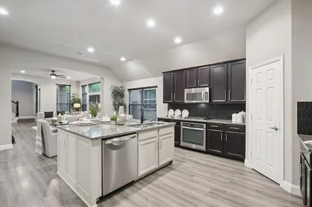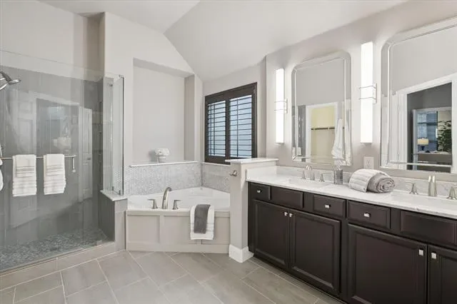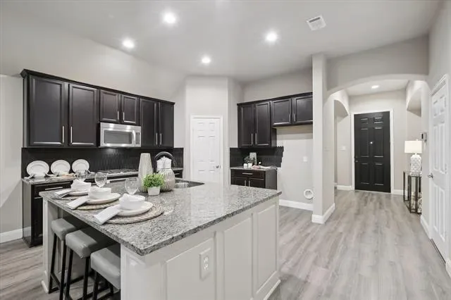 Welcome to this beautifully maintained residence in the highly sought-after Brynwyck subdivision of North Richland Hills. Nestled on a quiet street, this residence offers a perfect blend of comfort, space, and convenience. Inside, a spacious, open-concept layout designed for modern living and effortless entertaining. Two generous living areas and a large formal dining provide ample space for gatherings, while the oversized primary suite—located on the main floor—serves as a private retreat. The luxurious ensuite bathroom features marble countertops, dual vanities with designer lighting and mirrors, a soaking tub, a spacious walk-in shower, and two expansive walk-in closets. .The main living area features a gas fireplace with custom tile surround, arched doorways, large windows that bathe the space in natural light. The gourmet kitchen is a standout, complete with a large island, granite countertops, upgraded cabinetry, stainless steel appliances, gas cooktop, walk-in pantry, and a breakfast nook. Upstairs, enjoy 800+ square feet of flexible living space, including a media room, 4th bedroom, and a game room—with potential to add a third bathroom. Storage will never be a concern with a large walk-in, floored attic, a second attic space above the garage, under-stair storage, and multiple additional closets throughout the home. The fully fenced backyard is ideal for play or relaxation. Additional highlights include an in-wall pest control system, energy-efficient foam insulation. Recent updates such as luxury vinyl plank flooring, carpet, interior paint, and updated lighting and plumbing fixtures. Enjoy proximity to top-rated Birdville ISD schools, local parks, Walker Creek Trails, NYTEX Sports Center, NRH Library, and a wide array of dining, shopping, and entertainment options. Commuters will appreciate easy access the TRE rail. Don’t miss this rare opportunity to own a home in the coveted Brynwyck community—where elegance meets everyday living.