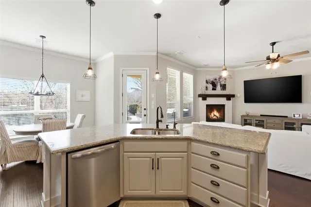 Outside, the extended covered patio is perfect for Texas evenings, entertaining friends, or enjoying quiet mornings, all framed by a beautifully landscaped yard.