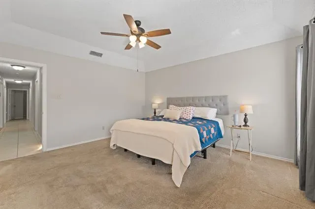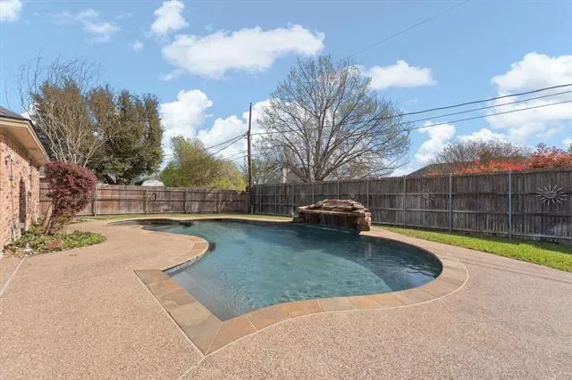 Well-Maintained Fantastic 4-Bedroom Home with POOL in NRH is Ready and Waiting for YOU! Welcoming Entry Opens to Spacious Living Room with Brick WOOD-Burning Fireplace with Mantle, Dining Area and Kitchen. Dining Area features French-Doors that Open to a Sweet PATIO Terrace for Outdoor Coffee, Dining, and Relaxing. Lovely Custom Wood Cabinetry in the Kitchen featuring Corian Countertops, Decorative Backsplash, and SS Appliances… OPENS to Breakfast Room with ISLAND Prep-Space and Serving Bar! PRIVATE Primary Bedroom is located in the Back of the Home and features ENSUITE Bath: Double Sink Vanity, Garden Tub, Separate Shower, and Walk-In Closet. 3 Additional Bedrooms with Full HALL Bath too! Backyard OASIS features Covered Back Patio with Ceramic Tile, Inground POOL, and Outdoor Kitchen Cabana with Built-In BBQ Grill, Serving Bar with Seating for 4, Sound System, and Decorative Lighting! NO HOA! LOCATION! LOCATION! Walking Distance to Schools!! RIDE the TEX RAIL to Grapevine OR Fort Worth; Rail Station IS Nearby! Seller has Loving Made Many Updates that INCLUDE: Updated Landscape Lighting (2024), New Pool Filter (2021), New Variable Speed Pool Pump (2019), New Interior HVAC Unit (2024), New Ceiling Fans (2024-except 1 room), New Pool Mastic (2025), New Tile on Back Patio (2025), New Bathroom Faucets (2023), Improved Attic Insulation (2019), New Security System-OWNED (2019), New Microwave Oven (2022), New Garage Door Opener (2020). Kitchen FRIDGE, Washer and Dryer May CONVEY with Acceptable Offer! MINERALS CONVEY!!