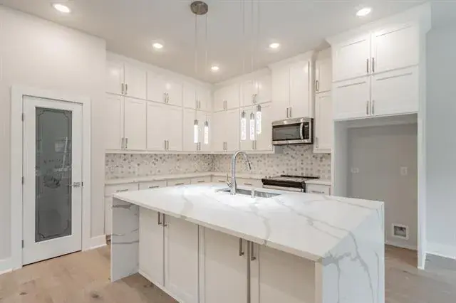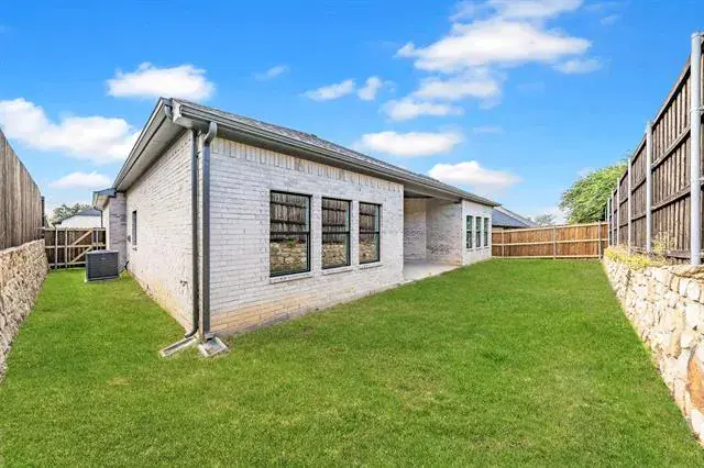 Welcome to your dream home! This beautiful, new construction one-story residence combines modern design with exceptional functionality. Boasting stunning curb appeal, the handsome stone and brick façade invites you inside. Upon entry, you’re greeted by a stylish, open-concept floor plan that flows seamlessly throughout. The heart of the home is the expansive living room, featuring high ceilings and a striking electric fireplace that creates a cozy ambiance. Bathed in natural light, the interior showcases a trendy neutral color palette that complements any décor. The chef’s kitchen is a true delight, equipped with crisp white cabinetry, a spacious island, stainless steel appliances, and a generous walk-in pantry for all your storage needs. Step outside to the large covered patio, perfect for entertaining or relaxing, and enjoy the privacy of your fenced backyard. This stunning new construction home is move-in ready—don’t miss the opportunity to make it yours!