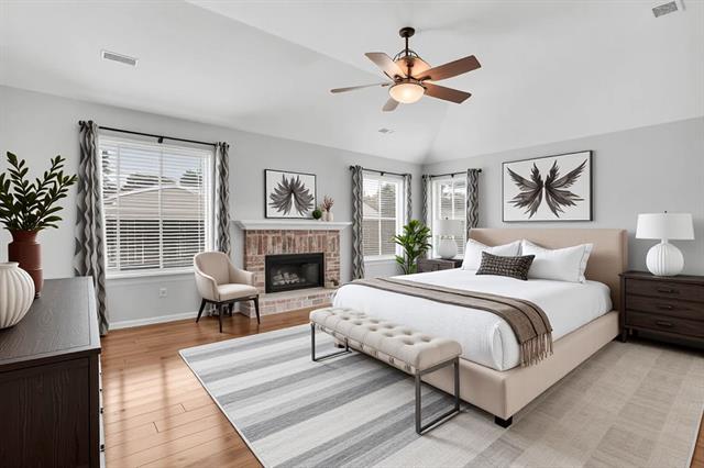 Beautiful open-concept home with classic charm located in the desirable Ember Oaks community. This spacious and flexible floor plan features a private home office, formal living and dining areas, a bright sunroom with AC, and a game or media room with a built-in bar—ideal for entertaining and everyday living. Recent updates include fresh interior paint, new flooring, a whole-house water filtration system, double-pane energy-efficient windows, and more. The gourmet kitchen is equipped with a 5-burner gas cooktop, double convection ovens, granite countertops, and a butcher block island, perfect for home chefs. The primary suite offers high ceilings, a sitting area, dual walk-in closets, granite counters, and a spa-like garden tub. Generously sized secondary bedrooms provide comfort for family or guests. The backyard offers plenty of space for gardening, outdoor activities, or relaxing in the sunroom. A true entertainer’s dream in a prime location!