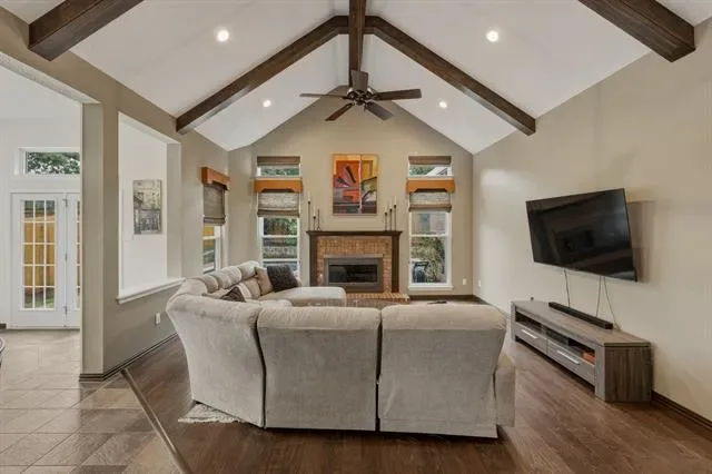 From the moment you step through the wide, welcoming entry, your eyes are drawn straight to the showstopper: a stunning open living room crowned with vaulted cathedral ceilings and rich wood beams that create a dramatic yet inviting focal point. The layout flows effortlessly into a huge, entertainer’s kitchen with abundant space to gather, cook, and connect. The first-floor primary suite is a true retreat, generously sized and privately tucked away. The formal living and dining spaces offer flexibility for hosting or everyday elegance. Upstairs, the home continues to impress with 3 oversized bedrooms, a versatile loft-style gameroom (currently used as an office), and an additional expansive gameroom that’s ready to become your ultimate hangout…think pool table, ping pong, media zone…you name it. Outside is where the fun really begins. The beautifully maintained backyard features a sparkling pool and spa, recently enhanced with a 20K renovation in 2024. Whether you’re entertaining or unwinding, this space delivers. Practical perks are just as strong: a 3-car garage, extended driveway with electric gate, and thoughtful upgrades including Jellyfish permanent holiday lighting, spray foam insulation, tankless water heater with circulator, updated fencing, and a rebuilt retaining wall. Wide open spaces, smart upgrades, and room for everyone, this home truly has it all!
