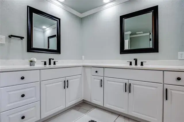 The home boasts large bedrooms with a functional layout, including his-and-hers closets. Bathrooms have been fully renovated with modern finishes. Throughout the home, you’ll find new crown molding, baseboards, wood laminate flooring, and ceramic tile.