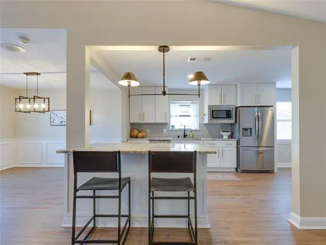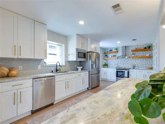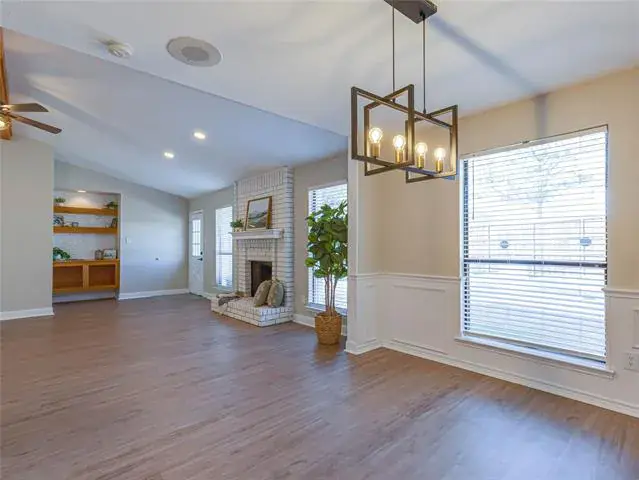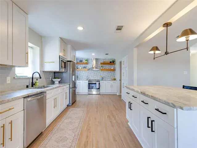 The perfect home does exist! This timeless ranch style home offers 3 bedrooms, 2 bathrooms, a pristine pool, and endless upgrades, leaving nothing to want. Take pride in ownership with the painted exterior, powder blue shutters, and copper gutters that are what Southern charm dreams are made of. The interior offers just as much character and warmth, as you step into the spacious living room that is drenched in natural light with a cathedral ceiling and a brick fireplace at the heart of the room. The spacious kitchen is the perfect backdrop for crafting unforgettable meals and memories, featuring shaker panel cabinetry, stunning granite countertops, stainless steel appliances, and an eat-in island. Built-in cabinetry, timeless wainscotting, a stained wood beam, and durable luxury vinyl plank flooring are some of the custom features that make this home a one of a kind. The primary suite is a spa escape in itself with a soaking tub, separate shower, dual sinks, and double closets. Enjoy outdoor living in the private backyard that boasts an immaculate pool, an 8 foot board-on-board fence, and ample grass space. This location is second to none – zoned in the prestigious Birdville ISD and offering easy access to downtown Fort Worth, Alliance Town Center, and much more!