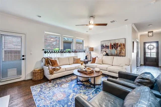This beautifully updated 3-bedroom, 2-bath residence offers a bright and inviting open-concept floor plan designed for both comfortable living and effortless entertaining. Elegant hand-scraped hardwood floors flow throughout the main living areas, complemented by a warm and inviting fireplace that creates the perfect focal point. The updated kitchen features new appliances and modern finishes, making it both stylish and functional. The secondary bathroom has been thoughtfully renovated, and the home has been freshly painted, creating a clean and move-in-ready feel. Step outside to enjoy a private outdoor deck, complete with low-maintenance, pet-friendly turf, ideal for relaxing, entertaining, or enjoying time outdoors year-round. Buyer to verify all measurements and school information.