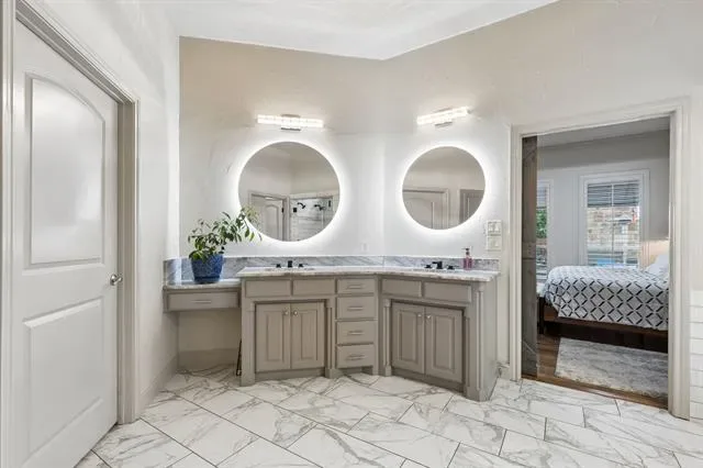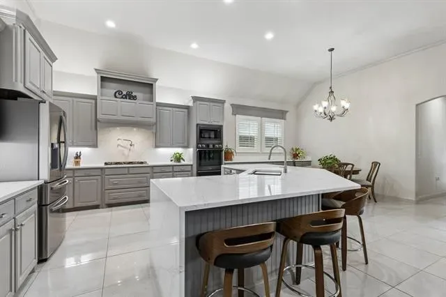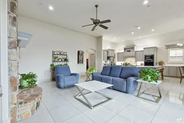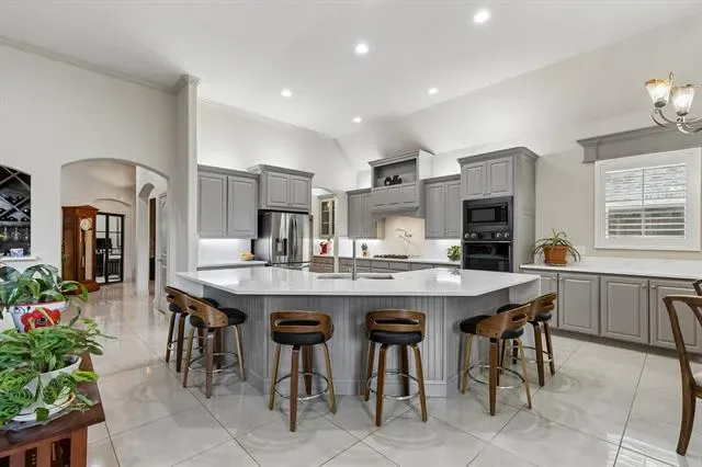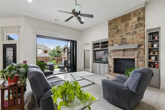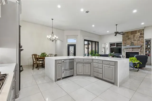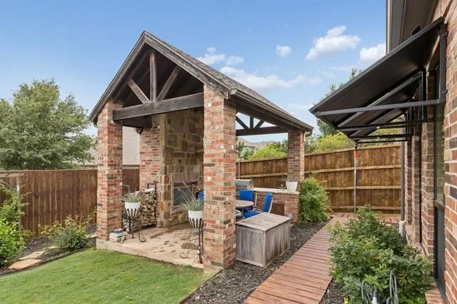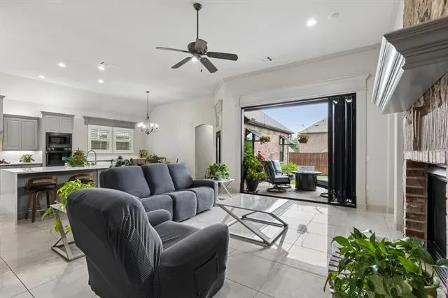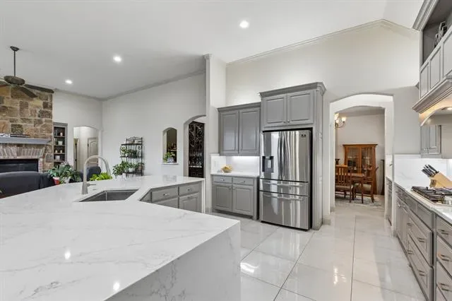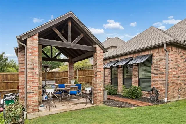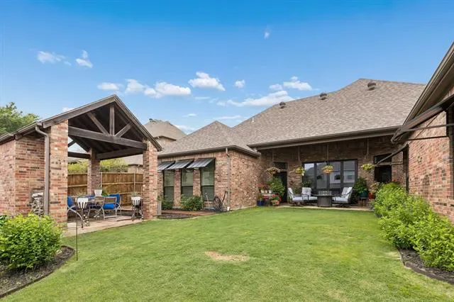 Stunning 3-bed, 2 full bath, 1 half bath home with over 2,700 sqft, offering a perfect blend of charm, functionality, and modern updates—all on a single level. This finely maintained traditional residence features an inviting open floorplan enhanced by tile &' wood flooring, built-in features, plantation shutters &' decorative lighting that creates a warm &' welcoming atmosphere. The spacious living room is centered around a cozy gas fireplace, ideal for relaxing or entertaining. The updated kitchen displays a striking waterfall design countertop, abundant cabinet space, &' high-end functionality with a gas cooktop, double ovens, microwave, &' dishwasher. Accordion-style sliding glass doors flood the home with natural light &' fully open to create a seamless indoor-outdoor flow—perfect for gatherings. A thoughtfully placed wine or coffee bar area connects the kitchen, formal dining room, and living room for added style. The dedicated laundry room provides full-size washer &' dryer hookups, built-in cabinetry, space for an additional refrigerator, &' direct access to the primary closet. Additional interior highlights include beautifully updated bathrooms &' thoughtful design details throughout. Step outside to an attractively landscaped backyard with a sprinkler system, where a charming gazebo creates the ideal outdoor living space—complete with a fireplace &' space for a grill, ideal for year-round enjoyment. The roof was replaced approximately 6 years ago and has a transferable warranty. The windows were also replaced &' have a transferable warranty, offering added value and peace of mind. A 3-car garage provides ample parking &' storage. With its desirable location nestled between Dallas and Fort Worth this home is situated in a lovely neighborhood feeding to Birdville ISD. Plenty of nearby parks, trails, shopping and dining if you go in any direction. This one-story layout, with its extensive updates, and exceptional indoor-outdoor living is truly designed to impress.