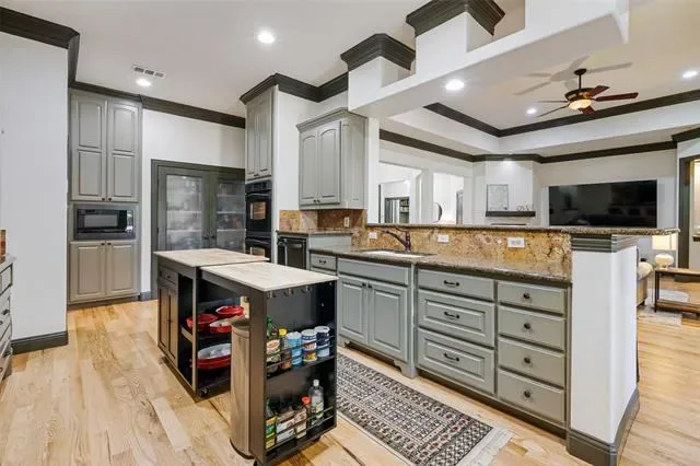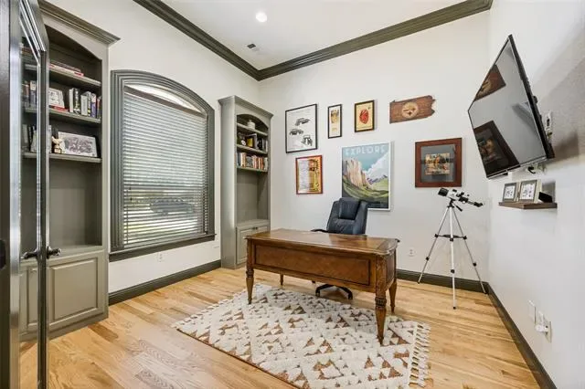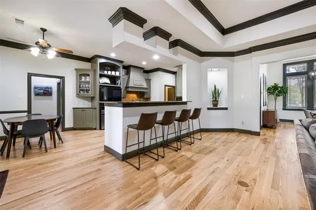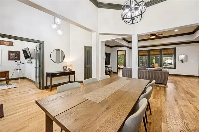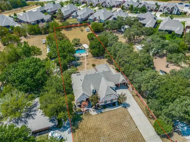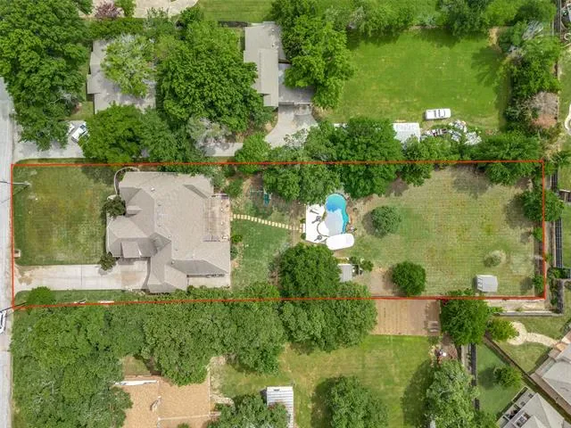 Tucked away on nearly a full acre in North Richland Hills, this beautifully updated single story home offers a rare combination of privacy, space, and refined interior finishes. Set back from the street with a long drive and mature trees, the property immediately delivers a sense of seclusion that’s hard to find this close to everything. Inside, the home has been completely refreshed with all-new flooring and fresh paint (2025), creating a bright, cohesive feel throughout. Natural light pours into the main living spaces, highlighting tall ceilings, custom trim work, and warm wood tones that give the home both character and comfort. The layout flows effortlessly from the dining and living areas into the kitchen, ideal for both everyday living and entertaining. The gourmet kitchen is equipped with double ovens, a gas cooktop, and a butler’s pantry, offering both function and style for anyone who enjoys cooking or hosting. The flexible floor plan includes four bedrooms, a private mother in law suite, and a dedicated office, giving you the versatility for guests, multigenerational living, or working from home. Major upgrades provide peace of mind and efficiency, including a new roof (2025), HVAC (2020), tankless water heaters (2023), plus foam insulation and a radiant barrier for improved energy performance. Out back, the property opens up into your own private retreat. The resurfaced pool with new decking (2024) is surrounded by mature trees and expansive yard space, offering both shade and room to spread out. A covered patio, built in grill, and direct pool bath access make this space ideal for entertaining. For those looking to add future value, architectural plans for a second story addition, including staircase and expanded living space are included with the sale. All of this in a prime location with multiple parks, including a dog park, within walking distance, plus easy access to shopping, dining, and major routes.