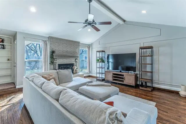 OPEN HOUSE MARCH 7 &' 8 FROM 12-2PM… This home is truly a standout from the moment you step onto the hand-scraped hardwood floors in the entire home. Meticulously updated and exceptionally maintained, it offers an inviting atmosphere filled with natural light and warm, welcoming tones. The vaulted living room serves as the heart of the home, creating an open and comfortable gathering space.