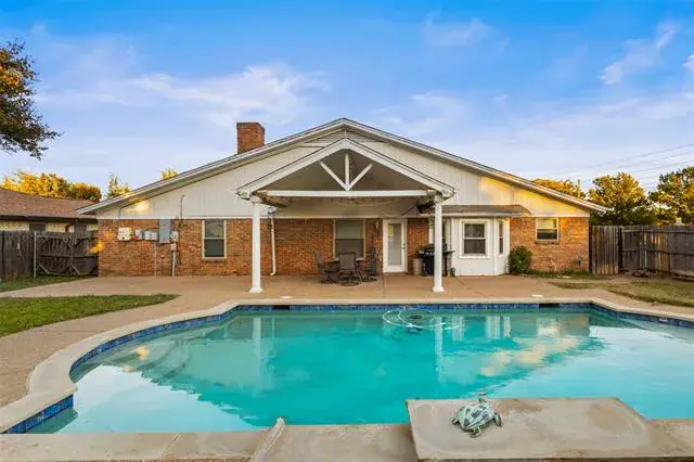 Welcome to this beautifully maintained corner-lot home in the heart of North Richland Hills! Featuring 4 spacious bedrooms and 2 full bathrooms, this charming property offers a warm blend of comfort, updates, and outdoor living. Step inside to a bright, open living room with vaulted ceilings and a cozy fireplace, creating the perfect space to relax or entertain.The efficient step-saver kitchen includes double ovens, abundant cabinetry, and dual pantries — ideal for anyone who loves to cook. The primary suite offers a peaceful retreat with a walk-in closet and private bath featuring a tile-surround shower.Outside is where this home truly shines! Enjoy an in-ground pool, extended decking, and a large covered patio perfect for gatherings, grilling, or relaxing. The yard is shaded by mature trees, and the corner-lot location offers added privacy and curb appeal. A storage shed and French drains add functionality, while energy-efficient vinyl windows, solar panels, and a new electrical panel help keep utility costs down.