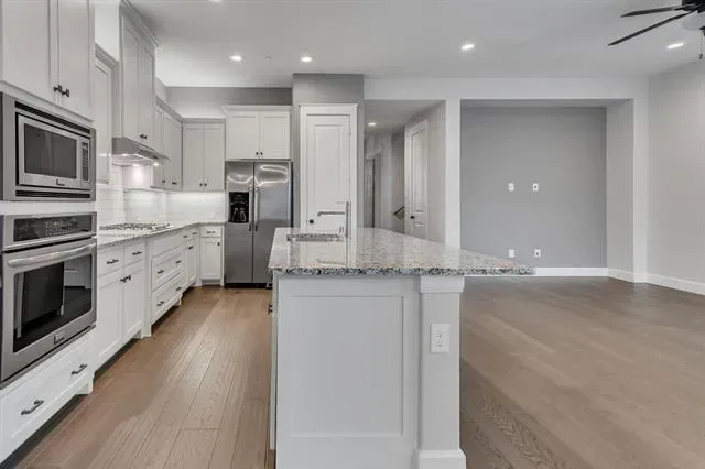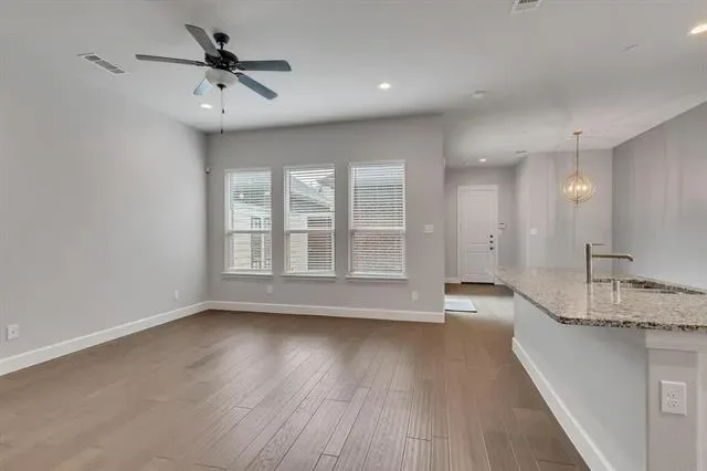 Welcome to this beautiful 2 bedroom, 2.5 bath townhome in the highly desired community of Hometown. Designed with both comfort and functionality, this home offers an ideal layout for modern living. As you step inside, you’ll be greeted by rich hardwood flooring, an abundance of natural light, a dedicated study and flexible bonus room – perfect for working from home or second living or dining area. The heart of the home is the expansive open-concept kitchen and main living area, ideal for entertaining! The kitchen features sleek quartz countertops, white cabinetry, gas cooktop, large island with bar seating. Just off the kitchen, enjoy a peaceful and private side patio—perfect for morning coffee or casual grilling. Retreat to the spacious primary suite, a serene haven with room to unwind. The en-suite bathroom features dual oversized vanities, a luxurious walk-in shower, and huge walk-in closet. The home also boasts a generous secondary bedroom and a centrally located laundry room. Recent updates include new roof and exterior paint. Hometown is known for its beautifully landscaped greenbelts, serene lake, winding canals, parks and miles of walking and biking trails with fun community events. Residents enjoy close proximity to the NRH Rec Center, NRH Library, local shopping, restaurants, and entertainment, as well as the nearby TexRail station offering convenient access to downtown Fort Worth and DFW Airport.