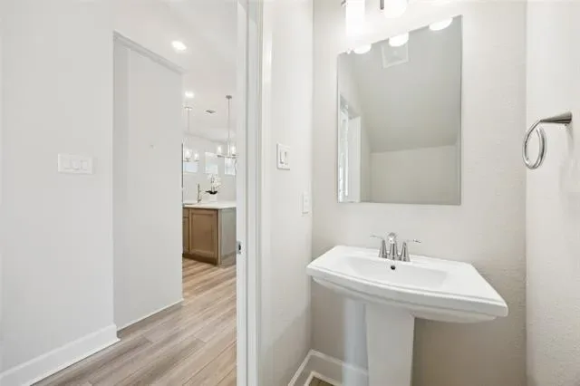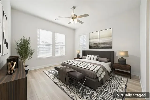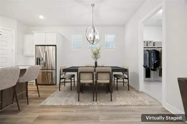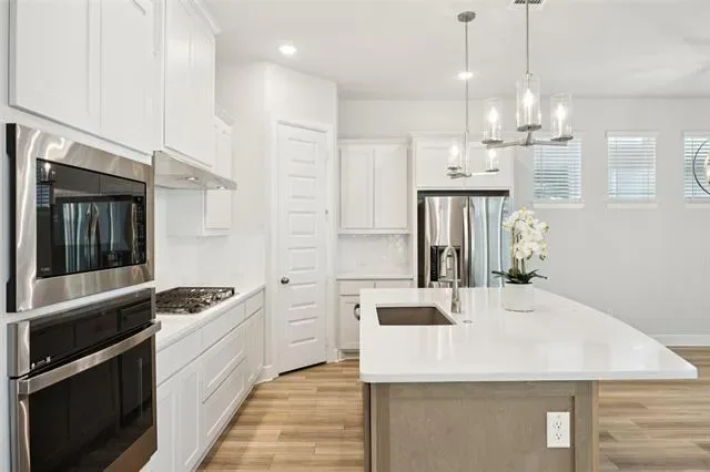 Luxurious primary bedroom is conveniently located on the main floor and includes a spa-like bath, providing a peaceful space to unwind. Enjoy the charm of front porch living in this highly desirable, park-facing home located in a welcoming neighborhood with abundant green space right out front. Designed with both comfort and entertaining in mind, the open-concept family, dining, and kitchen areas create a seamless flow that’s filled with natural light. The modern kitchen is a standout, featuring a large island with seating, built-in appliances, designer lighting, ample cabinetry, and a spacious walk-in pantry—perfect for everyday living and hosting guests alike. The inviting living room sits at the heart of the home, offering a warm and airy atmosphere. Upstairs, you’ll find spacious secondary bedrooms, a full bath, and a large family room that offers flexible space for a media room, game room, or home office. The utility room features a handy backpack rack, and the garage offers plenty of extra storage space. A tankless water heater adds efficiency and convenience. This 3-bedroom, 2.5-bath home is ideally located within walking distance to the NRH Rec Center, library, shopping, and dining. With easy access to TexRail, commuting to DFW Airport is a breeze. Combining location, functionality, and style, this home offers a lifestyle you’ll love coming home to. 3D tour available online!