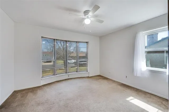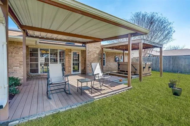 Welcome to this Charming traditional 3 bdrms, 2 full baths, single story home in highly desired neighborhood. As you walk inside your welcomed by a large foyer area with a coat closet. Straight ahead is a large livingroom with a wood burning fireplace, cathedral ceiling, wainscoting and Faux wood beams. Such a great place to relax and enjoy family time. Featuring a Gallery Eat-in-kitchen with traditional wood cabinets, Built-in-microwave, Wall stove, glass stovetop with a large bay window overlooking the tranquil backyard with beautiful trees. The formal dining room or second living room offers build-in-bookshelf with large baywindow and wood floors. Separate utility room off the kitchen and 2 car garage. Large Primary bedrm with ensuite bath with double sink and 2 closets. 2 additional bedrooms on the opposite side of the house with guest bath between bedrms. Recently painted kitchen, foyer, Primary bdrm, front bedroom and dining room. Newer lighting fixtures in the foyer, dining room, kitchen over sink and exterior lighting of home. Ceiling fans in all bedrooms. Enjoy the Large backyard with covered patio decorative lighting and hot tub for relaxing evening after a long day at work or just for therapy. Home has solar panel and can be easily transferred which will help with your electric bills on those hot summer days or cool nights. Lots of places to take the kiddos. Enjoy Linda Spurlock playground, slides, climbling, walking trails, visit with the ducks and turtles. Green Valley or Adventure World Park where you can go biking, hiking, enjoy playing in the ball fields, and fishing. Aware winning schools. Closely located to major highways, TX-26 Grapevine Hwy, loop 820 to south with TX 183 Airport Freeway. FM 1938 Davis Blvd located west of the property. Easy commute 20 mins to DFW Airport. Explore Shopping and Restaurants. All Information to be verified by buyer’s and buyer’s agent, schools and room measurements, etc. See Documents for Maint foundation docs.